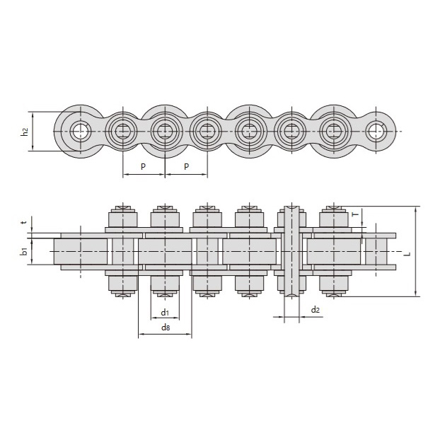 - Lielā un mazā veltņa konstrukcija:Pirmā veltņa diametrs ir lielāks par iekšējās ķēdes plāksnes augstumu, tā ārējā virsma ir redzama ārpus ķēdes plāksnes gala. Otrais veltnis ir mazāks, tā diametrs ir mazāks par iekšējās ķēdes plāksnes augstumu.