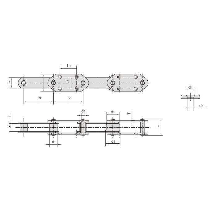 • Augsta stabilitāte:Katrs gultnis sastāv no tapas un uzmavas, kas ļauj veltņiem rotēt vienmērīgi. Šarnīrveida konstrukcija ļauj ķēdei izturēt lielu spiedienu un triecienu, saglabājot stabilitāti un uzticamu transportēšanu.