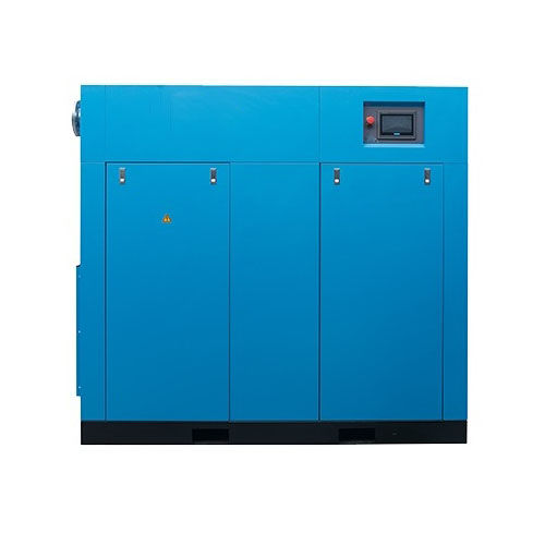 Kompresors izmanto divu pakāpju skrūves konstrukciju: pirmajā pakāpē gaiss sākotnēji tiek saspiests, pēc tam tiek atdzesēts un nonāk otrajā pakāpē, lai turpinātu saspiešanu līdz vajadzīgajam spiedienam. Divpakāpju process samazina kompresijas pakāpi katrā pakāpē un samazina noplūdi, tādējādi uzlabojot efektivitāti. Pastāvīgo magnētu sinhronais motors izmanto frekvences pārveidi, lai automātiski pielāgotu ātrumu atkarībā no gaisa pieprasījuma, līdz minimumam samazinot nevajadzīgu enerģijas patēriņu un vienlaikus nodrošinot stabilu spiediena izvades jaudu.