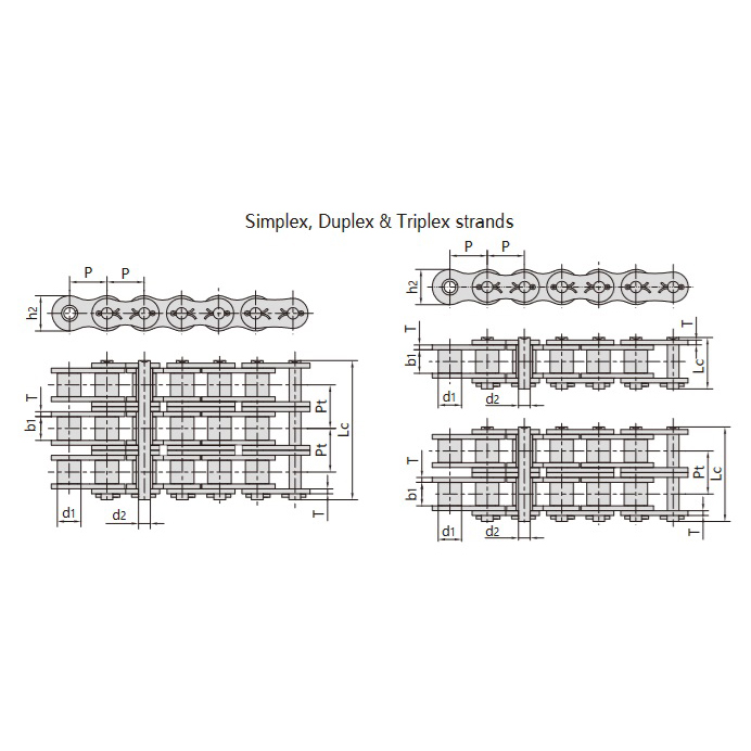 Lielas noslodzes sērijas roļļu ķēdes ar fiksatoru tapuir konstruētas tā, lai izturētu lielas slodzes, tāpēc tās ir ideāli piemērotas sarežģītām mehāniskās transmisijas sistēmām. Tās optimizētā struktūra un materiālu izvēle nodrošina efektīvu jaudas pārvadi un izcilu nodilumizturību pat lielas slodzes apstākļos.