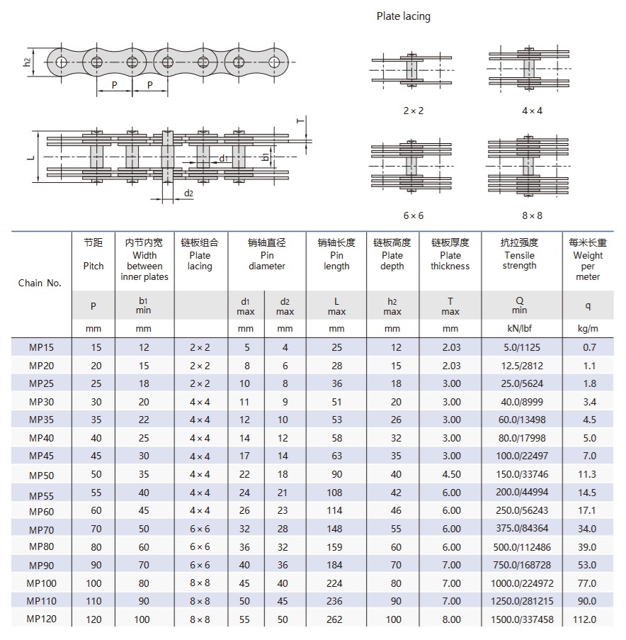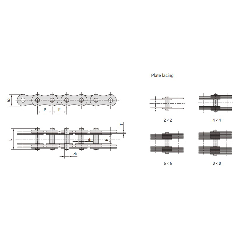 - Divu biezu ķēdes plākšņu un trīs plānu ķēdes plākšņu kombinācija, kas nodrošina vienmērīgu un simetrisku spēku bez papildu lieces momentiem.