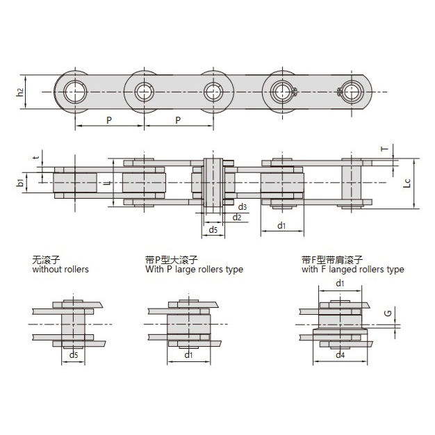 - Šāda konstrukcija ļauj ķēdei izturēt slodzes spiedienu, kas tiek pārraidīts caur veltņiem, un absorbēt triecienu ieslēgšanās laikā, nodrošinot ilgtermiņa uzticamību un izturību.